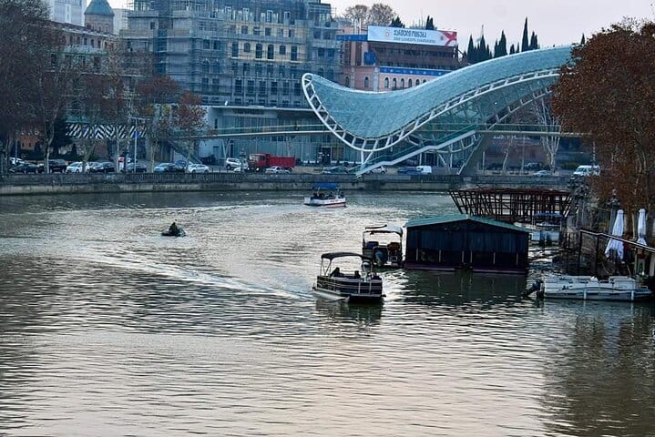 You can take a boat ride to the sights of Tbilisi. At the Love Bridge and under the rock of Metekhi Church. You will see how the houses are spread out and built on the rock with beautiful balconies.